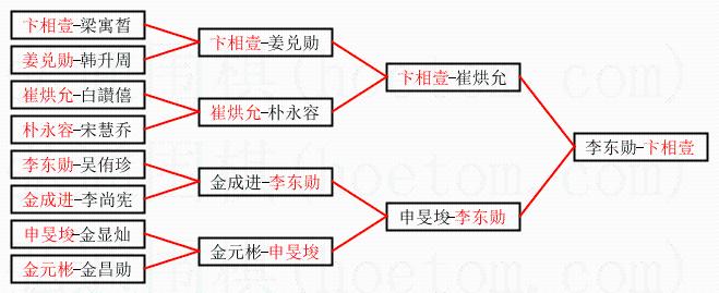 1.卞相壹获得冠军,李东勋获得亚军。决赛比分:卞相壹1:0李东勋。棋局: