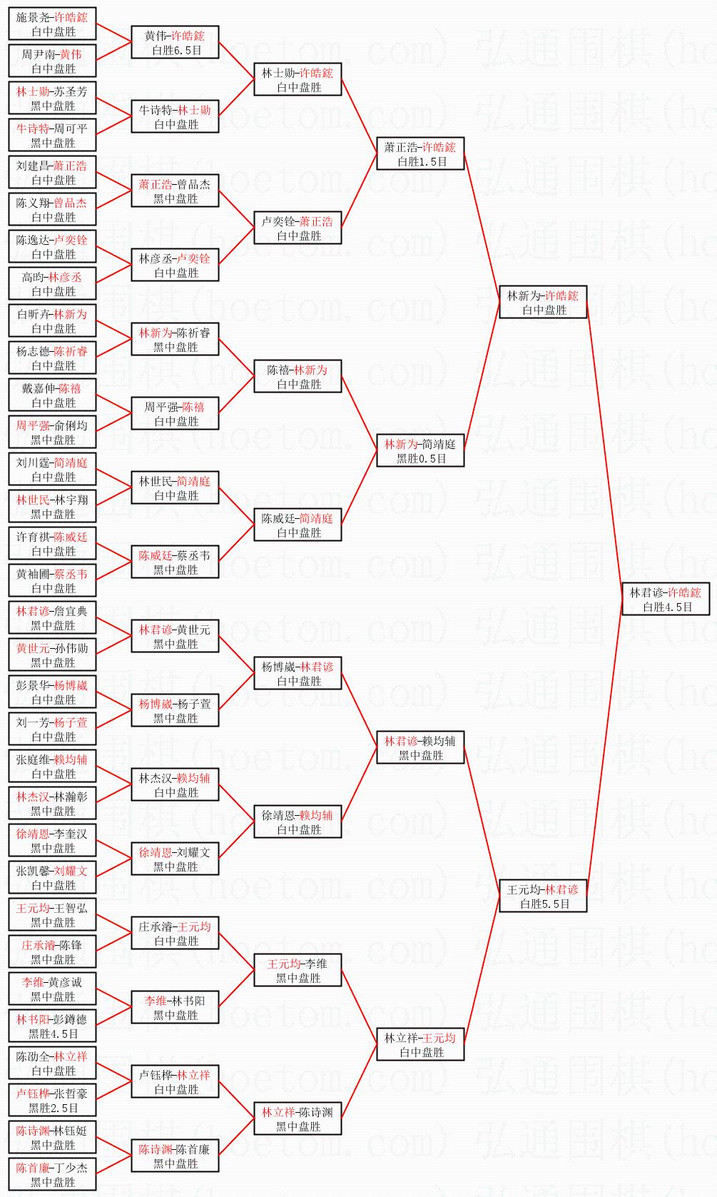 | 1.许皓鋐获得冠军,林君谚获得亚军。决赛比分:许皓鋐2:0林君谚。棋局: | ||