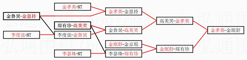 1.金孝英获得冠军,金珉舒获得亚军。决赛比分:金孝英1:0金珉舒。棋局: