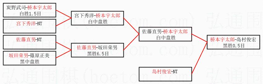 | 1.桥本宇太郎获得冠军,岛村俊宏获得亚军。决赛比分:桥本宇太郎2:1岛村俊宏。棋局: | ||