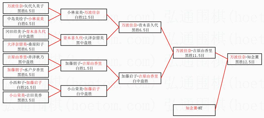 | 1.万波佳奈获得冠军,知念薰获得亚军。决赛比分:万波佳奈2:1知念薰。棋局: | ||