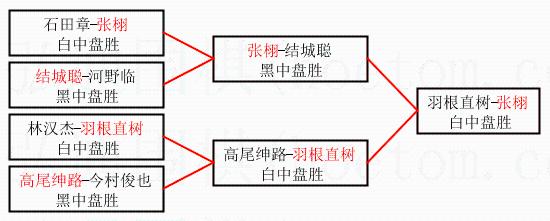 3.下半区半决赛羽根直树获胜,比分:羽根直树1:0高尾绅路。棋局: