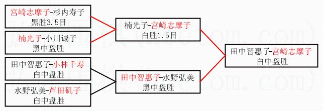 | 1.宫崎志摩子获得冠军,田中智惠子获得亚军。决赛比分:宫崎志摩子1:0田中智惠子。棋局: | ||