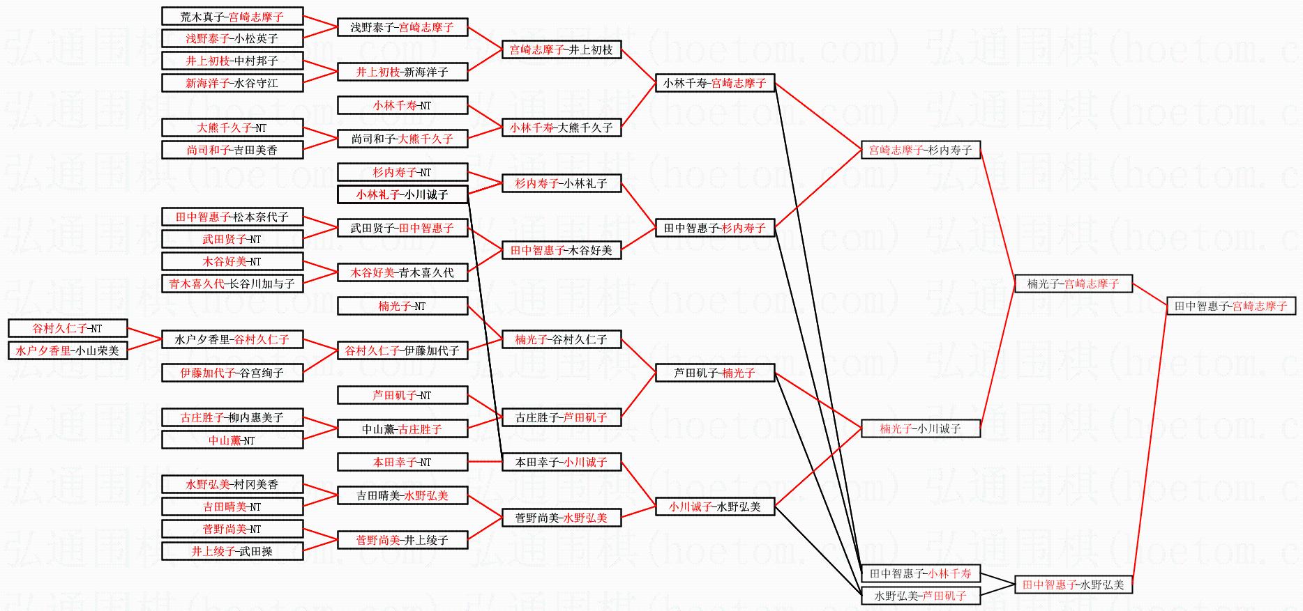| 1.宫崎志摩子获得冠军,田中智惠子获得亚军。决赛比分:宫崎志摩子1:0田中智惠子。棋局: | ||