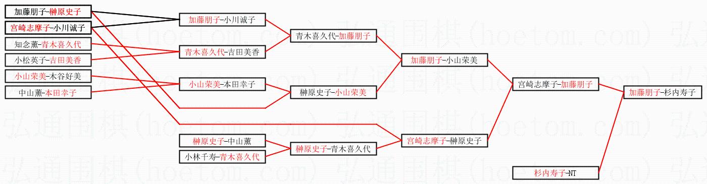 1.加藤朋子获得冠军,杉内寿子获得亚军。决赛比分:加藤朋子2:0杉内寿子。棋局: