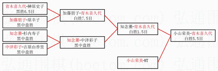 1.青木喜久代获得冠军,小山荣美获得亚军。决赛比分:青木喜久代2:0小山荣美。棋局: