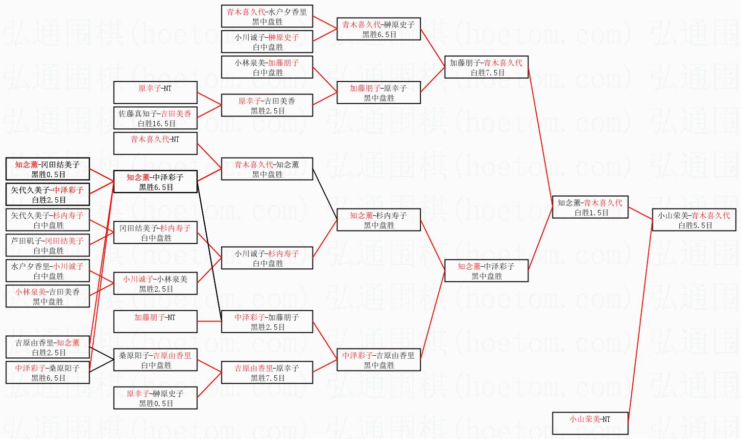 1.青木喜久代获得冠军,小山荣美获得亚军。决赛比分:青木喜久代2:0小山荣美。棋局: