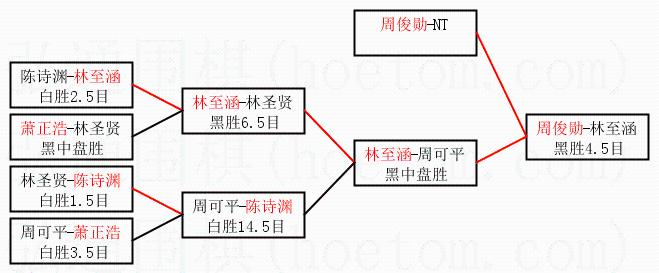 | 1.周俊勋获得冠军,林至涵获得亚军。决赛比分:周俊勋3:1林至涵。棋局: | ||