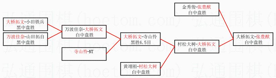 3.下半区半决赛大桥拓文获胜,比分:大桥拓文1:0村松大树。棋局: