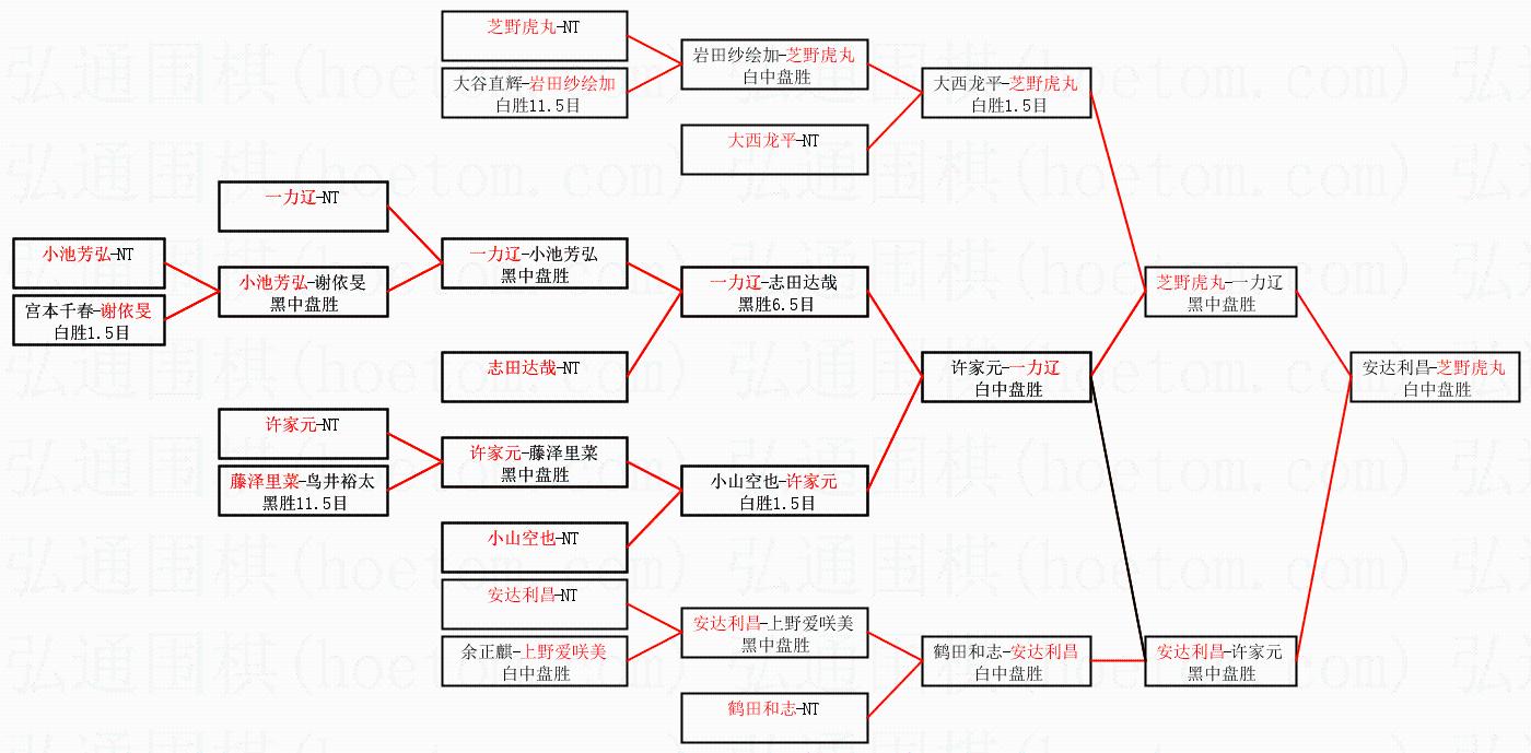 | 1.芝野虎丸获得冠军,安达利昌获得亚军。决赛比分:芝野虎丸1:0安达利昌。棋局: | ||