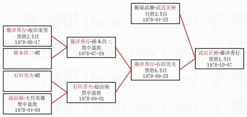 1.武宫正树获得冠军,藤泽秀行获得亚军。决赛比分:武宫正树1:0藤泽秀行。棋局:
