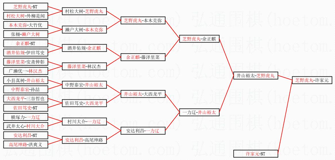 | 2.上半区半决赛芝野虎丸获胜, 比分:芝野虎丸 1:0 井山裕太。棋局: | ||