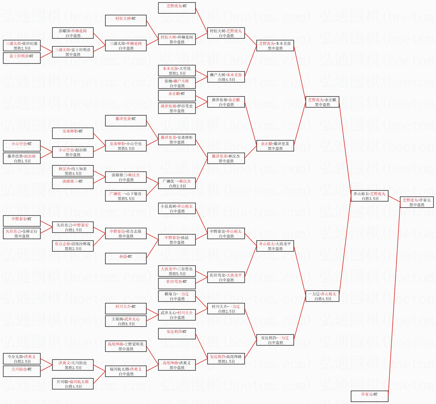 | 2.上半区半决赛芝野虎丸获胜, 比分:芝野虎丸 1:0 井山裕太。棋局: | ||
