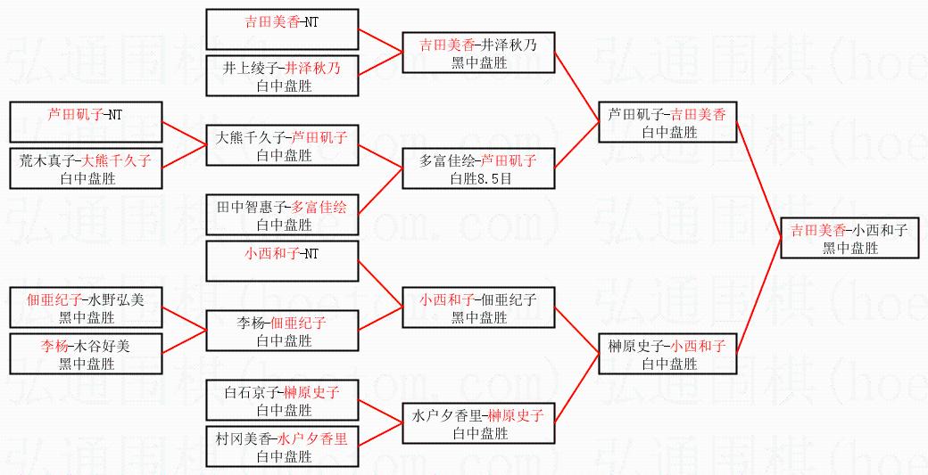 1.吉田美香获得冠军,小西和子获得亚军。决赛比分:吉田美香1:0小西和子。棋局: