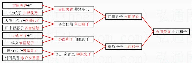 1.吉田美香获得冠军,小西和子获得亚军。决赛比分:吉田美香1:0小西和子。棋局: