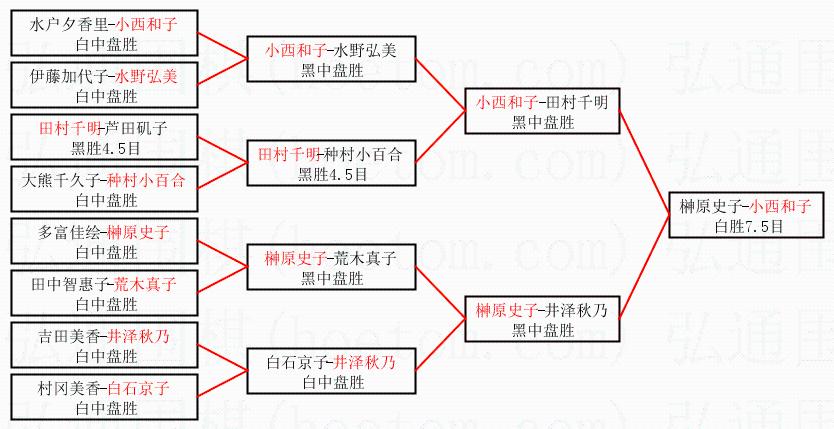 2.上半区半决赛小西和子获胜, 比分:小西和子 1:0 田村千明。棋局: