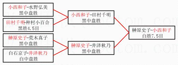 2.上半区半决赛小西和子获胜, 比分:小西和子 1:0 田村千明。棋局: