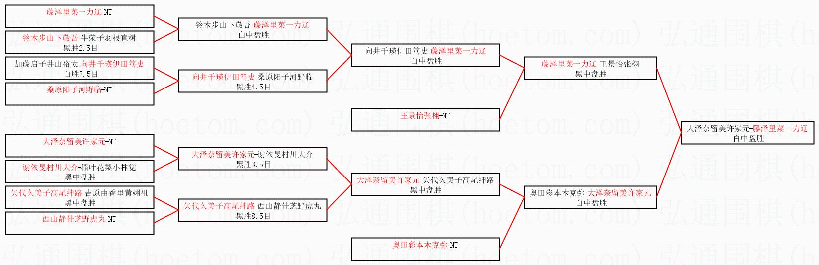 | 1.藤泽里菜一力辽获得冠军,大泽奈留美许家元获得亚军。决赛比分:藤泽里菜一力辽1:0大泽奈留美许家元。棋局: | ||