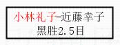 1.小林礼子获得冠军,近藤幸子获得亚军。决赛比分:小林礼子2:1近藤幸子。棋局: