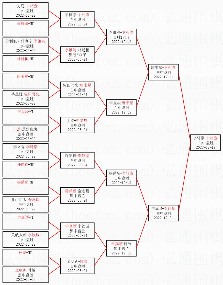 1.卞相壹获得冠军,李轩豪获得亚军。决赛比分:卞相壹2:0李轩豪。棋局: