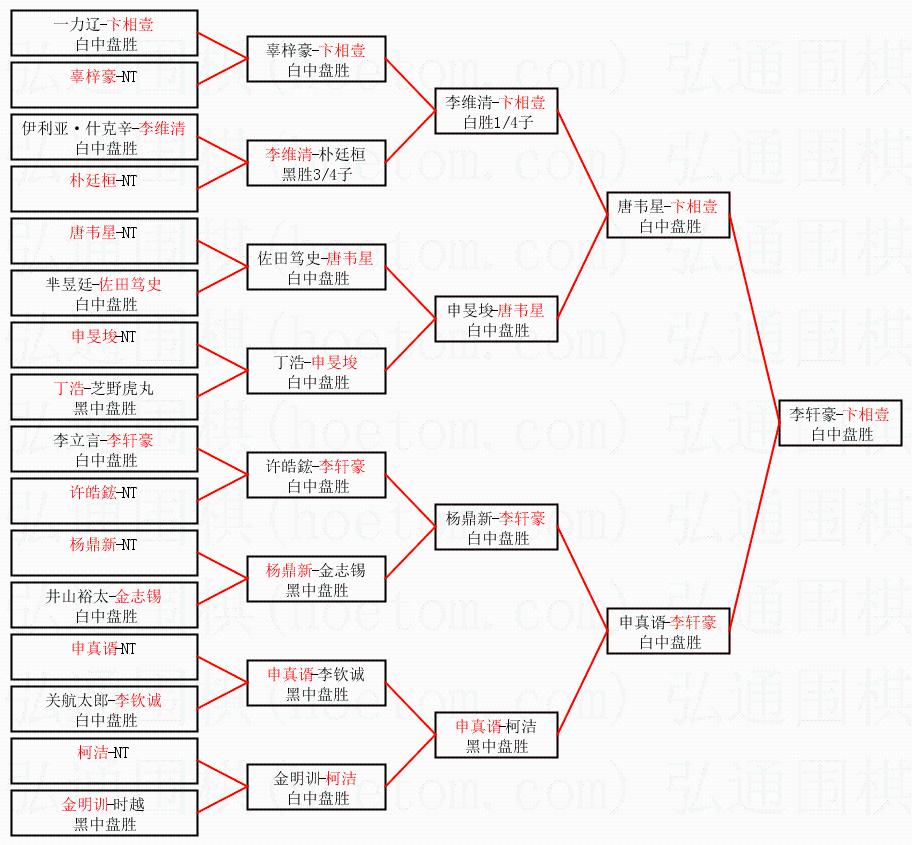 1.卞相壹获得冠军,李轩豪获得亚军。决赛比分:卞相壹2:0李轩豪。棋局: