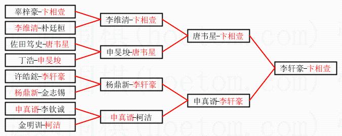 | 1.卞相壹获得冠军,李轩豪获得亚军。决赛比分:卞相壹2:0李轩豪。棋局: | ||