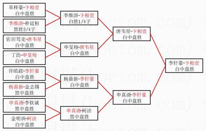 1.卞相壹获得冠军,李轩豪获得亚军。决赛比分:卞相壹2:0李轩豪。棋局: