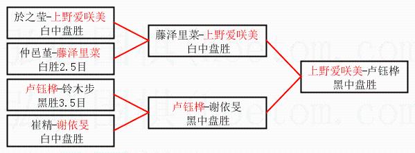 | 1.上野爱咲美获得冠军,卢钰桦获得亚军。决赛比分:上野爱咲美1:0卢钰桦。棋局: | ||
