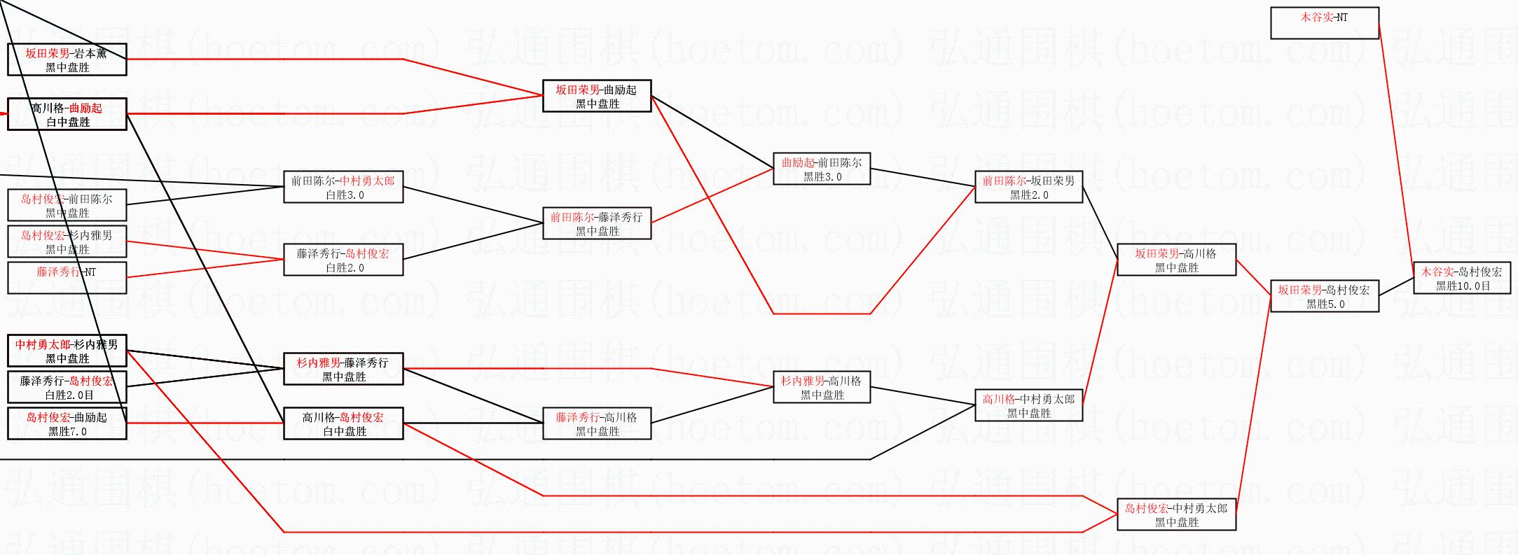 | 1.木谷实获得冠军,岛村俊宏获得亚军。决赛比分:木谷实3:2岛村俊宏。棋局: | ||