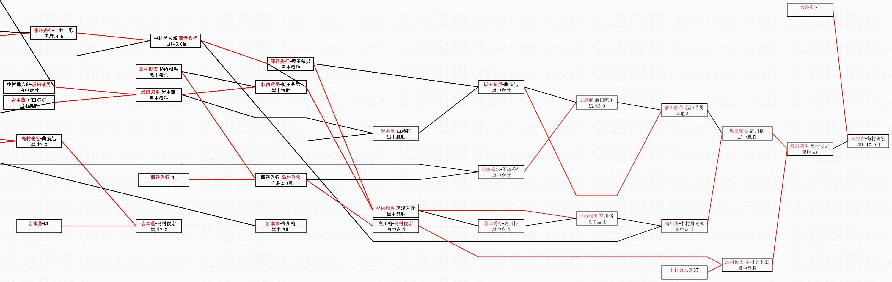 | 1.木谷实获得冠军,岛村俊宏获得亚军。决赛比分:木谷实3:2岛村俊宏。棋局: | ||