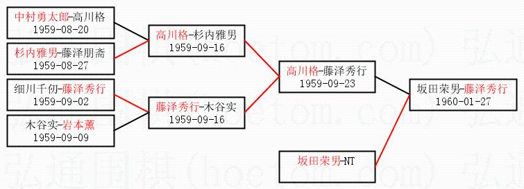 1.藤泽秀行获得冠军,坂田荣男获得亚军。决赛比分:藤泽秀行3:1坂田荣男。棋局: