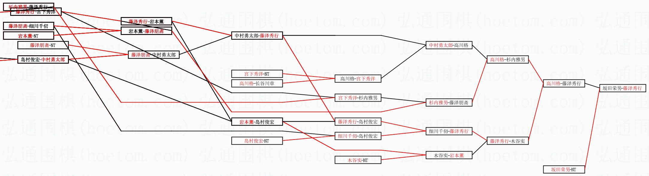 1.藤泽秀行获得冠军,坂田荣男获得亚军。决赛比分:藤泽秀行3:1坂田荣男。棋局: