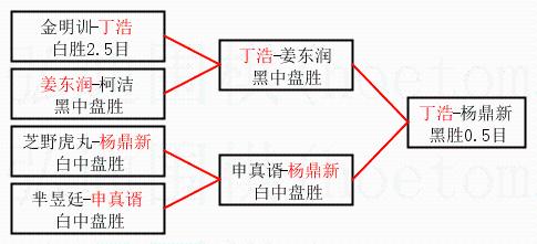 2.上半区半决赛丁浩获胜, 比分:丁浩 1:0 姜东润。棋局: