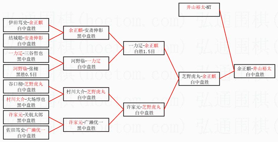| 1.井山裕太获得冠军,余正麒获得亚军。决赛比分:井山裕太3:2余正麒。棋局: | ||