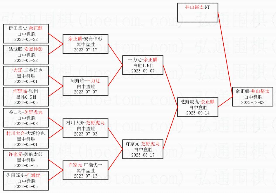 | 1.井山裕太获得冠军,余正麒获得亚军。决赛比分:井山裕太3:2余正麒。棋局: | ||