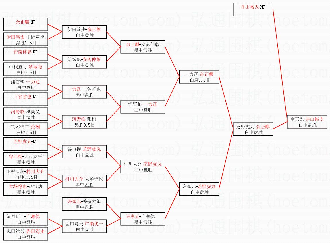 1.井山裕太获得冠军,余正麒获得亚军。决赛比分:井山裕太3:2余正麒。棋局: