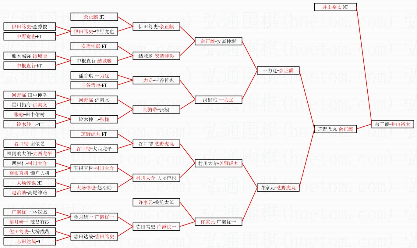 1.井山裕太获得冠军,余正麒获得亚军。决赛比分:井山裕太3:2余正麒。棋局: