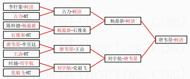 2.上半区半决赛柯洁获胜, 比分:柯洁 1:0 杨鼎新。棋局: