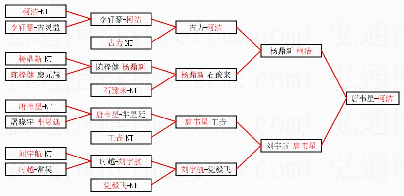 1.柯洁获得冠军,唐韦星获得亚军。决赛比分:柯洁1:0唐韦星。棋局: