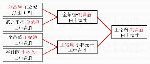 2.上半区半决赛刘昌赫获胜, 比分:刘昌赫 1:0 金荣桓。棋局: