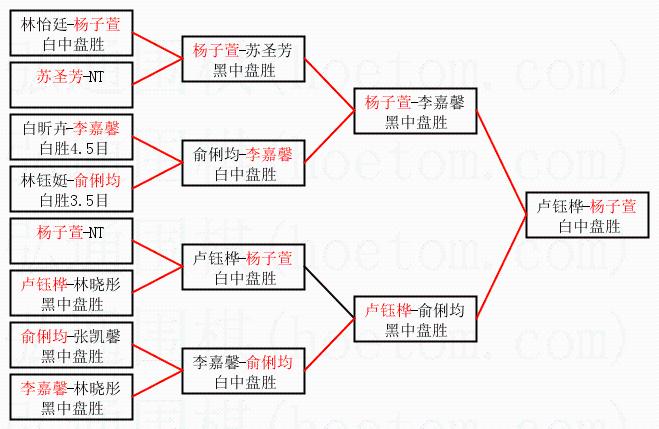 | 1.杨子萱获得冠军,卢钰桦获得亚军。决赛比分:杨子萱1:0卢钰桦。棋局: | ||