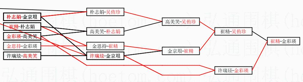 | 1.崔精获得冠军,金彩瑛获得亚军。决赛比分:崔精3:0金彩瑛。棋局: | ||