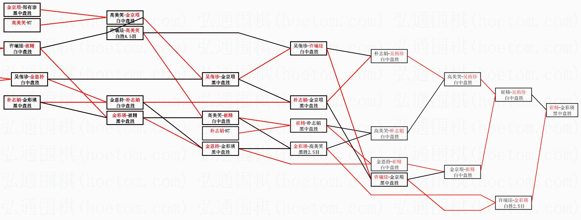 | 1.崔精获得冠军,金彩瑛获得亚军。决赛比分:崔精3:0金彩瑛。棋局: | ||