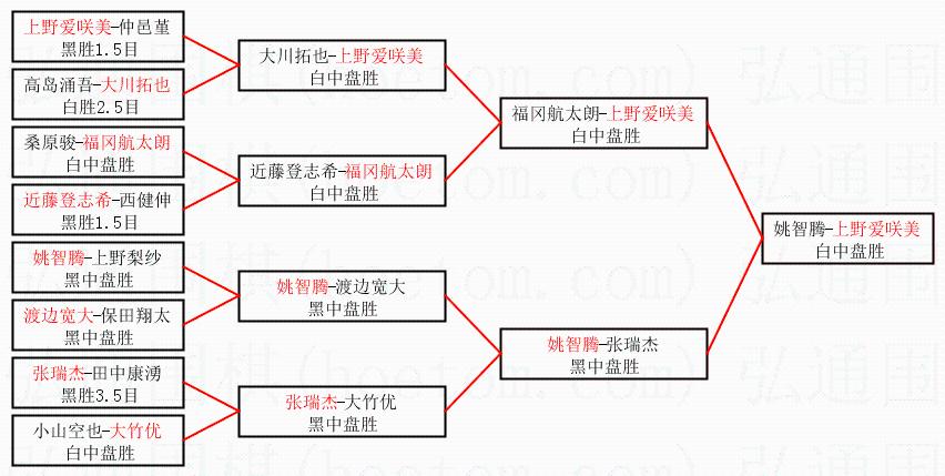 | 1.上野爱咲美获得冠军,姚智腾获得亚军。决赛比分:上野爱咲美2:0姚智腾。棋局: | ||