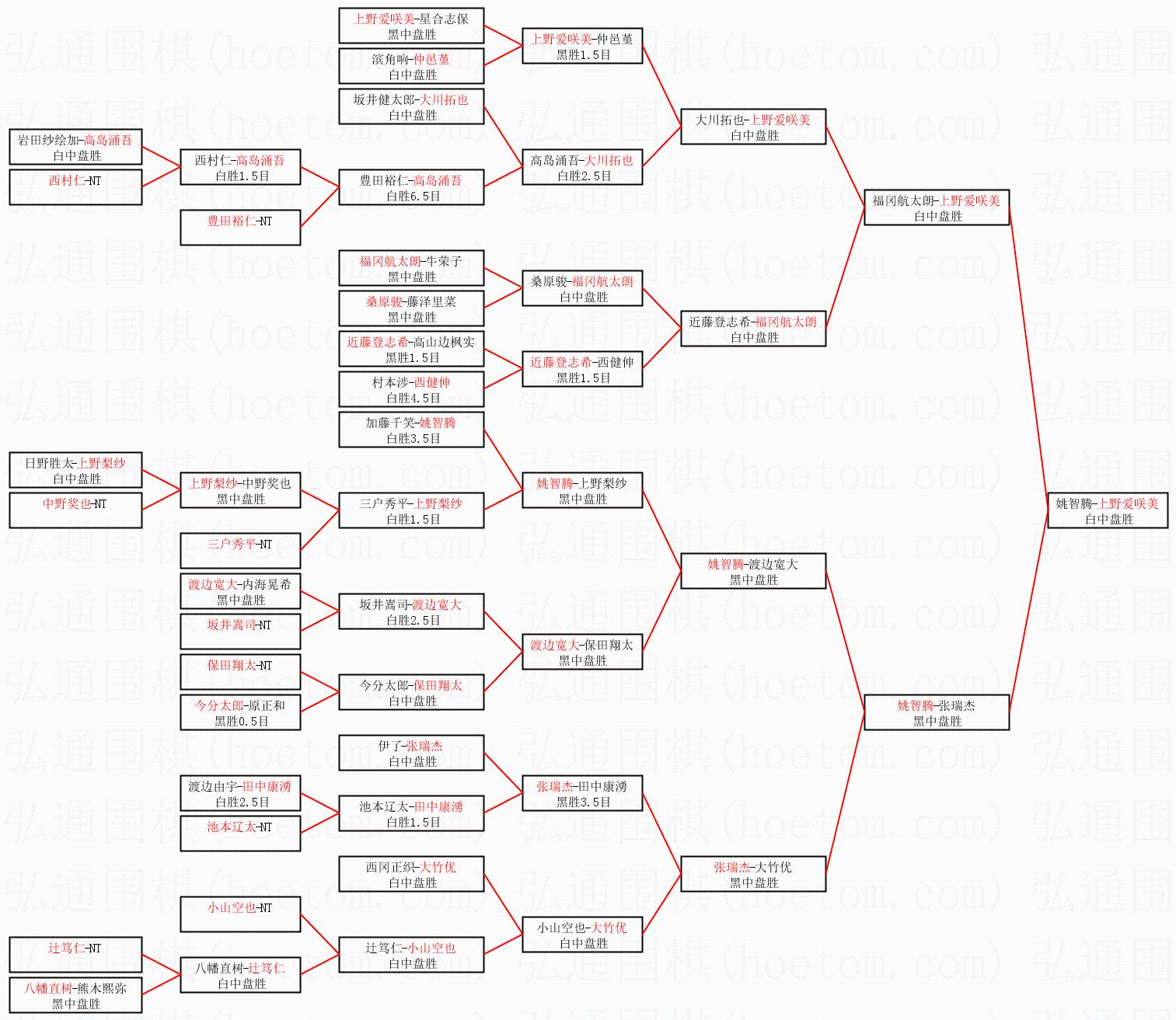 | 1.上野爱咲美获得冠军,姚智腾获得亚军。决赛比分:上野爱咲美2:0姚智腾。棋局: | ||