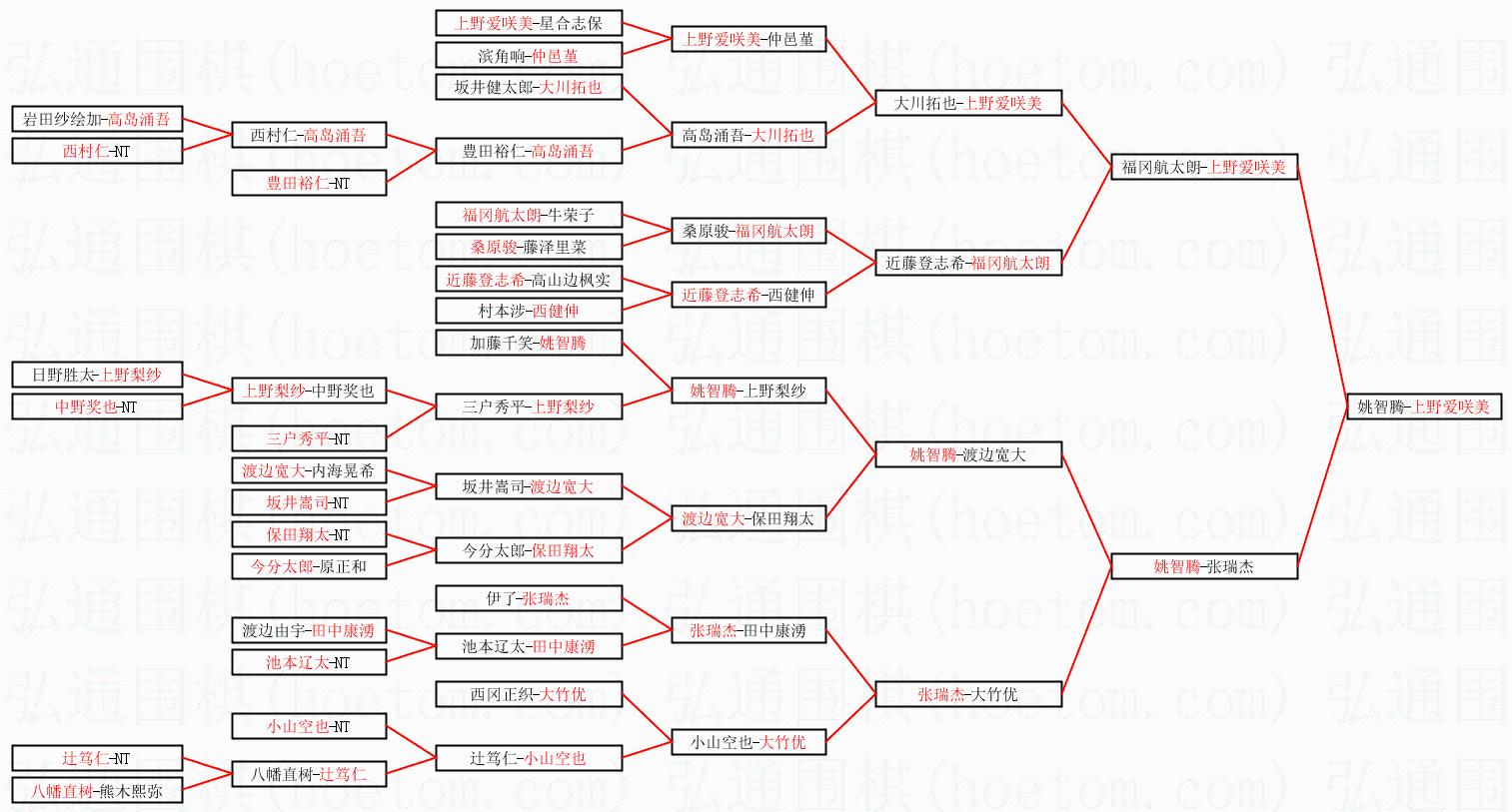 1.上野爱咲美获得冠军,姚智腾获得亚军。决赛比分:上野爱咲美2:0姚智腾。棋局: