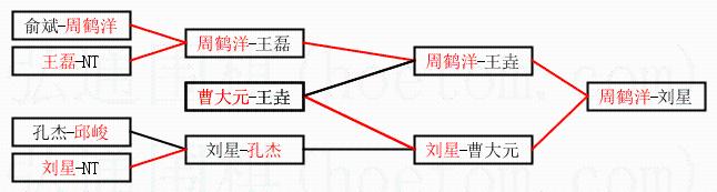 1.周鹤洋获得冠军,刘星获得亚军。决赛比分:周鹤洋1:0刘星。棋局: