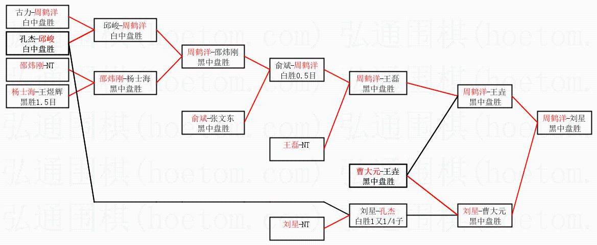1.周鹤洋获得冠军,刘星获得亚军。决赛比分:周鹤洋1:0刘星。棋局: