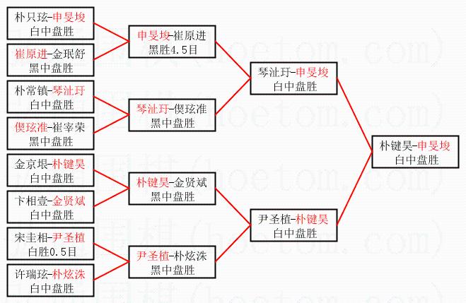 1.申旻埈获得冠军,朴键昊获得亚军。决赛比分:申旻埈2:0朴键昊。棋局: