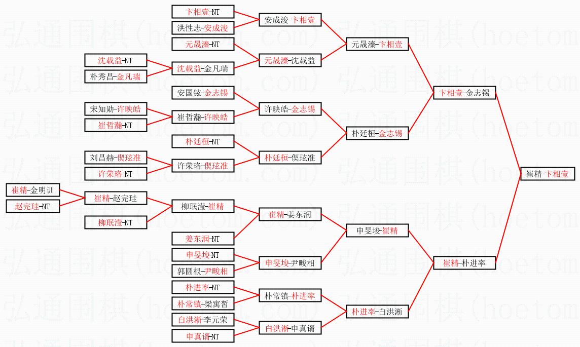 1.卞相壹获得冠军,崔精获得亚军。决赛比分:卞相壹3:0崔精。棋局: